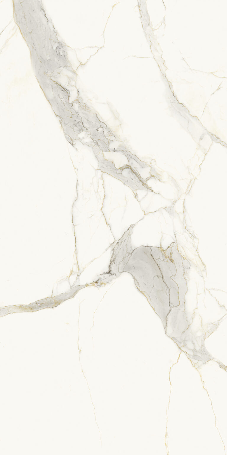 Laminam offers all the appeal of its structure in the 1000×3000 mm size, available only in the Laminam 5 thickness, and in 1620×3240 mm, available in thicknesses varying from Laminam 5/5+ to Laminam 12/12+ and Laminam 20+. The surface finishes available for Calacatta Michelangelo play a key role and include the Polished and Soft Touch finishes, alongside the standard Natural.