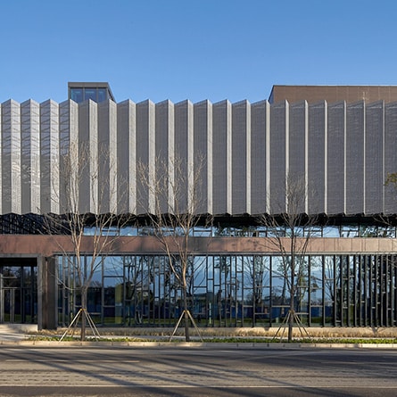 The majestic ceramic-clad façades, whose rhythm is punctuated by large windows, welcome visitors with the signature Made in Italy design of Laminam.
