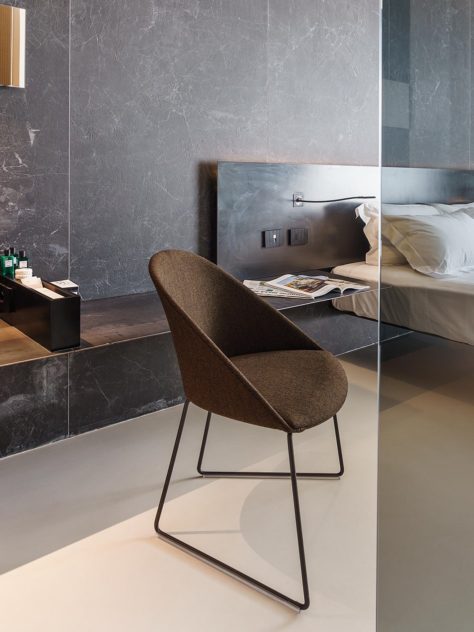 This goal was also achieved thanks to the variety of textures, colors, sizes and thicknesses of the Laminam slabs used, which made it possible to achieve a total expressive continuity. Applied in particular to the walls of the bathrooms of the suites and of the bed headboards, the Laminam slabs of the I Naturali, Calce but also Seta series enrich the design of the coverings in an amazing Laminam Effect approach.