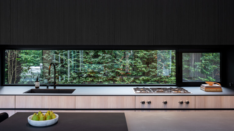 Les grandes dalles de Laminam continuent à définir le style de la résidence conçue par Vanessa Fong Design au travers de surfaces qui créent des liens, des références et des jeux de couleurs non seulement entre elles et avec les autres meubles, mais aussi avec les espaces extérieurs, grâce à la présence d’ouvertures situées dans des endroits inhabituels, comme au-dessus de la table de cuisson. La relation entre l’intérieur et l’extérieur, entre le bâtiment et la nature, est réinventée, en laissant entrer visuellement la végétation par les ouvertures.