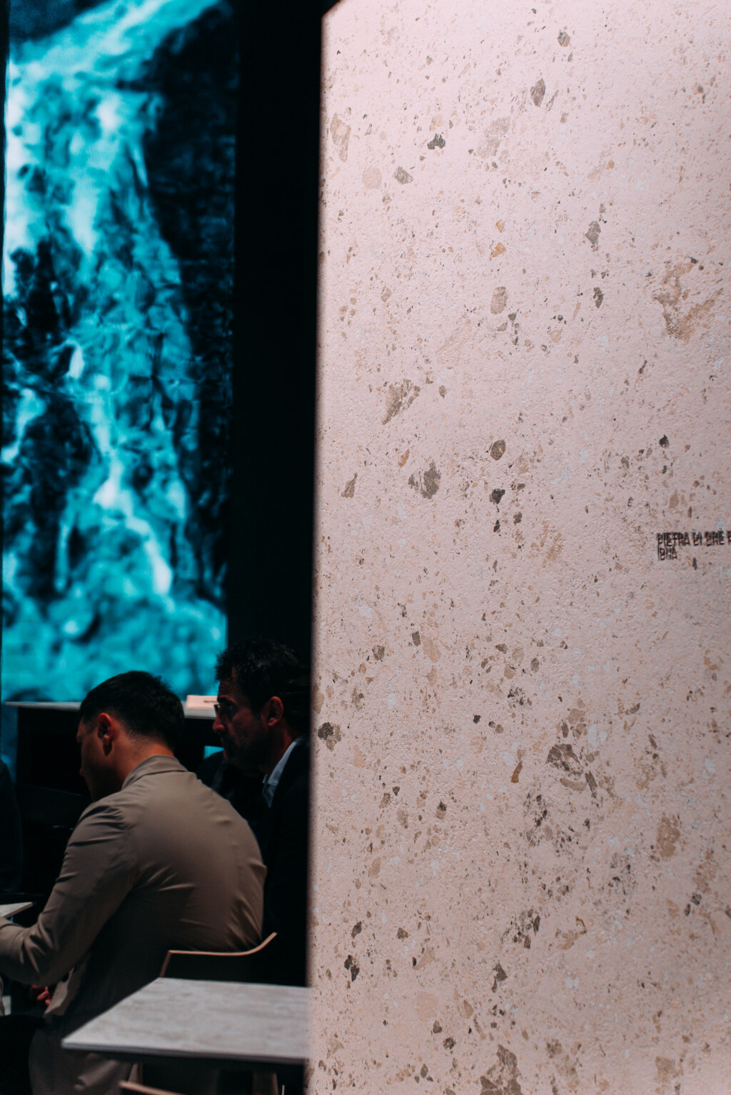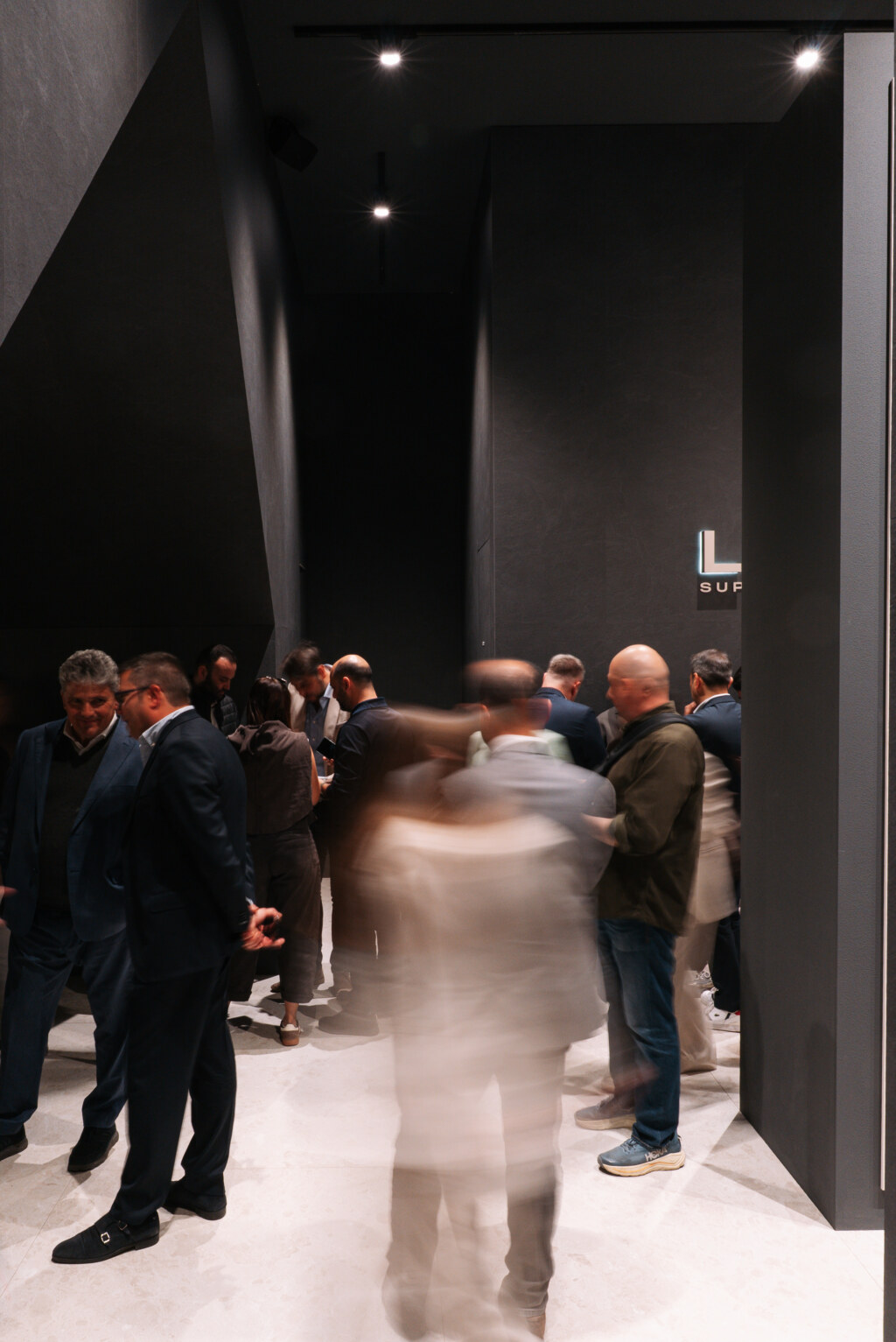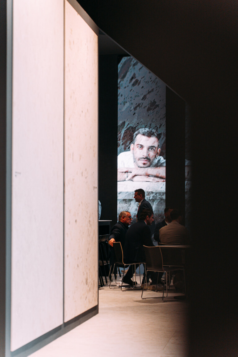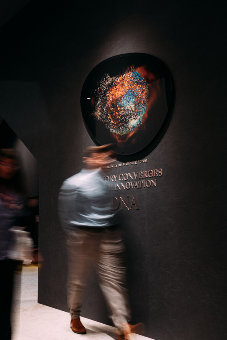 Notable attendees included architect Stefano Belingardi, who designed the stand concept: a project that plays with geometry and light, conceived as a primordial environment composed of clean, sculpted volumes.