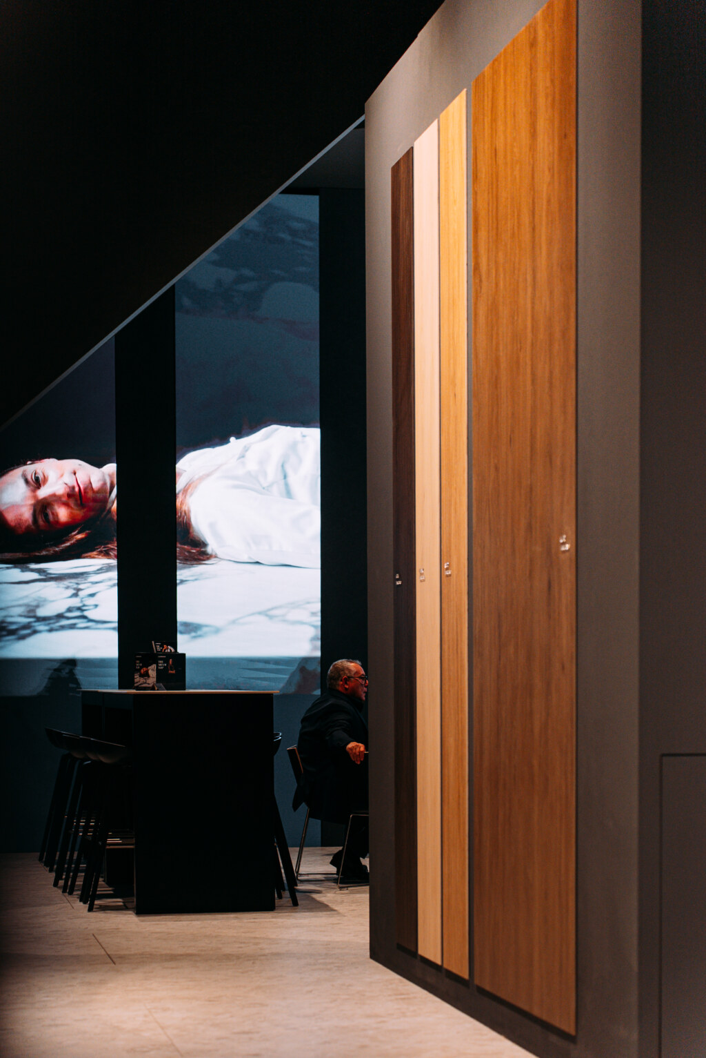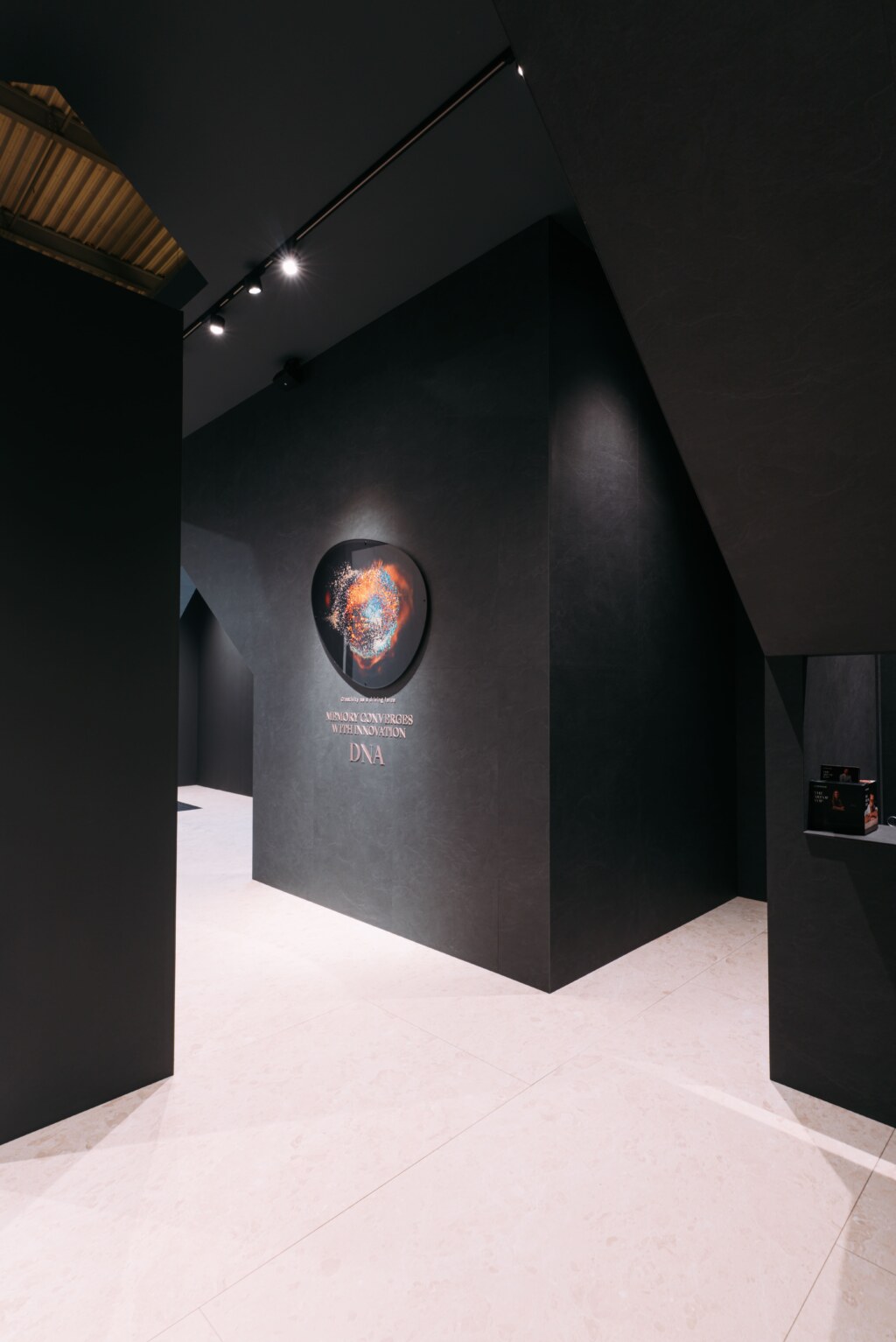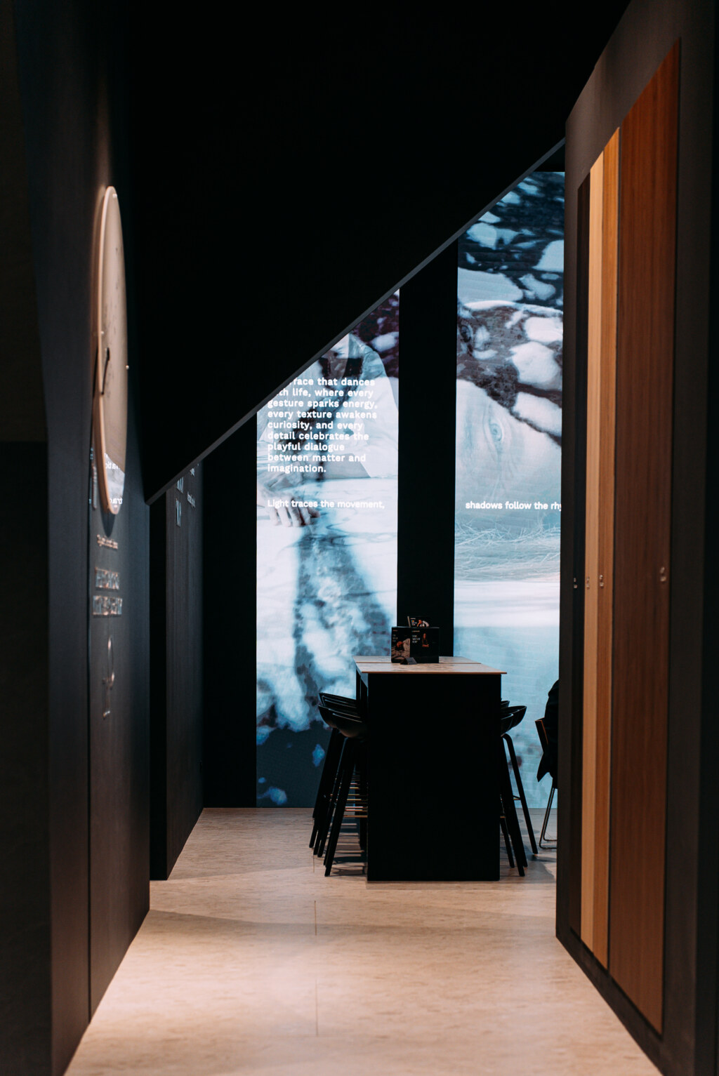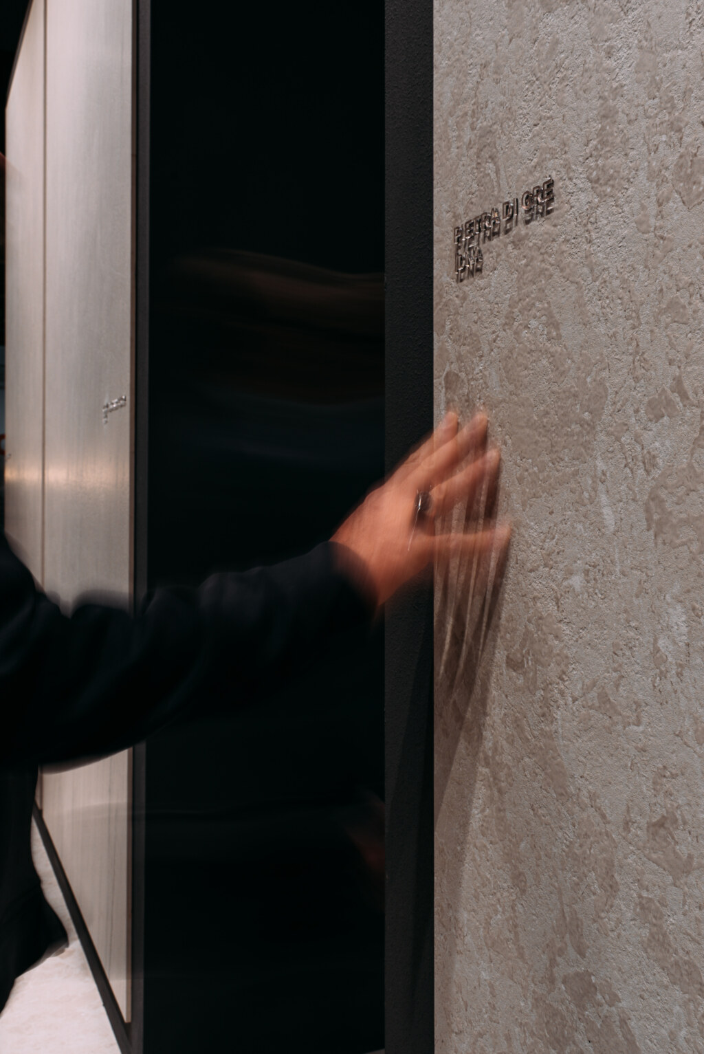 Notable attendees included architect Stefano Belingardi, who designed the stand concept: a project that plays with geometry and light, conceived as a primordial environment composed of clean, sculpted volumes.