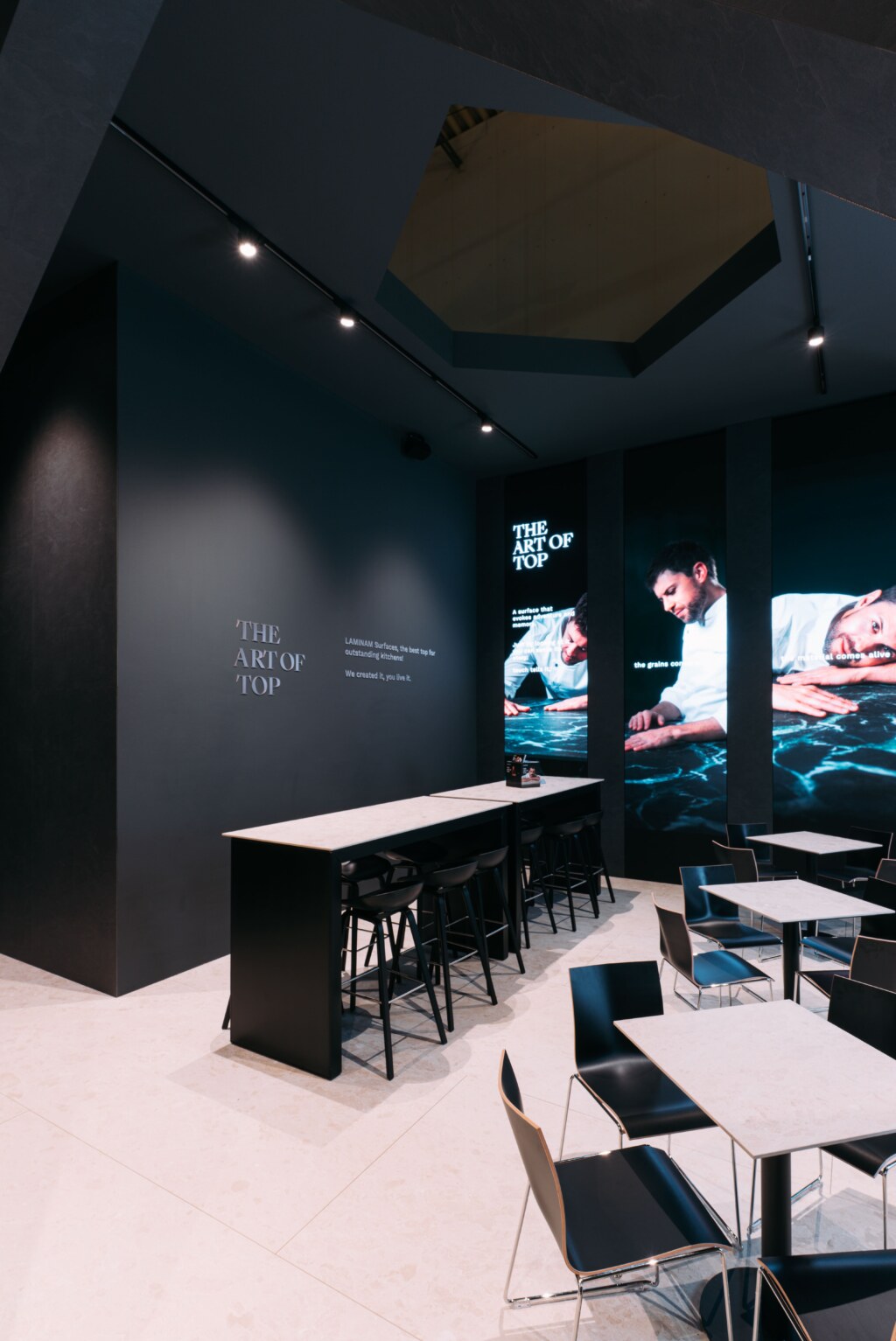A striking visual narrative, enhanced by large video walls, guided visitors on an immersive journey to discover Laminam’s innovations and “The Art of Top”, the project at the heart of a multi-channel communication campaign that has already garnered widespread attention. The advert, supported by a structured social media campaign and a comprehensive media plan spanning television – with commercial slots during MasterChef Italia on Sky Uno, LA7, LA7 Cinema and RAI channels – national and local radio, cinemas across Italy, as well as digital platforms such as Spotify, Meta, Google and YouTube, defines the Laminam aesthetic, in which the worktop is not merely a work surface, but the heart of the contemporary home.