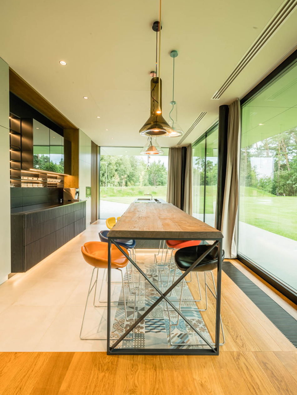 Green Line House, designed by architect Przemek Olczyk of Mobius Architekci, is a private lakeside residence, which blends harmoniously into the surrounding environmental thanks in part to the chosen construction techniques which, while modern, pay homage to local architectural traditions.