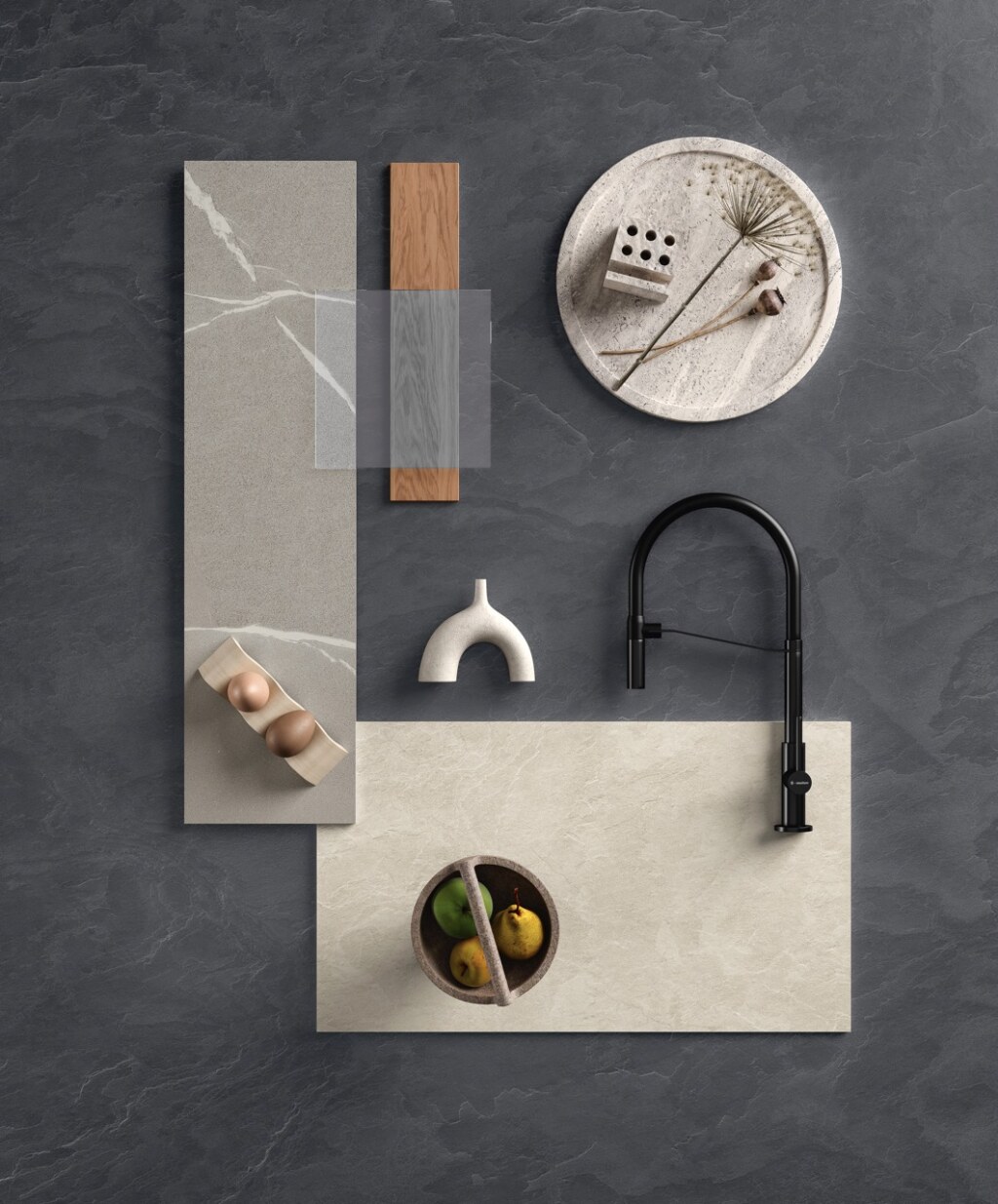 El objetivo es crear una atmósfera serena y luminosa, capaz de favorecer la relajación y el confort visual. Justo como Slate, una mezcla perfecta entre la elegancia del minimalismo escandinavo y la búsqueda del bienestar interior del arte japonés. Inspirada en la personalidad íntima de la pizarra natural, esta colección revela sus rasgos más auténticos en superficies sofisticadas e inconfundibles.