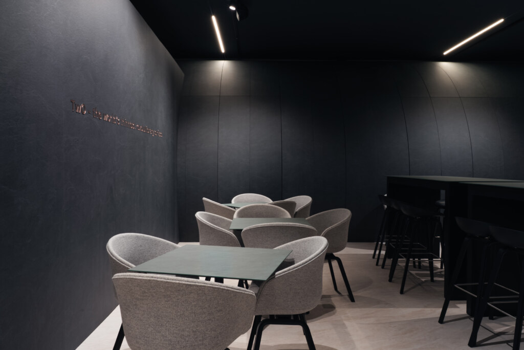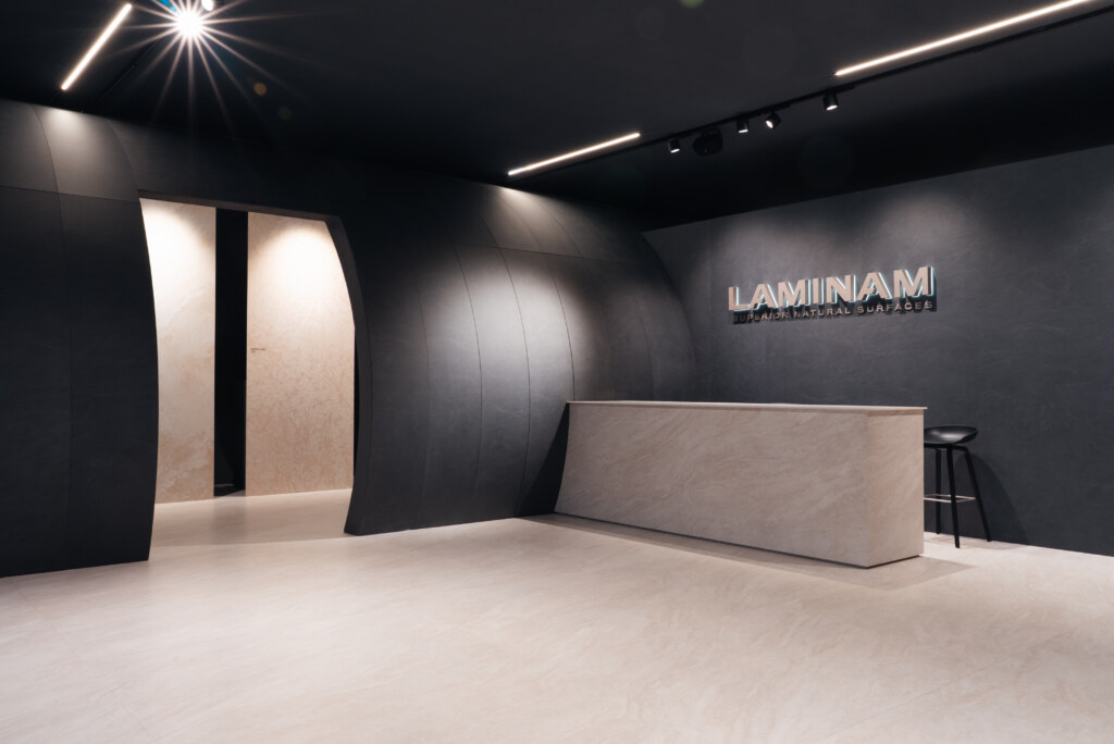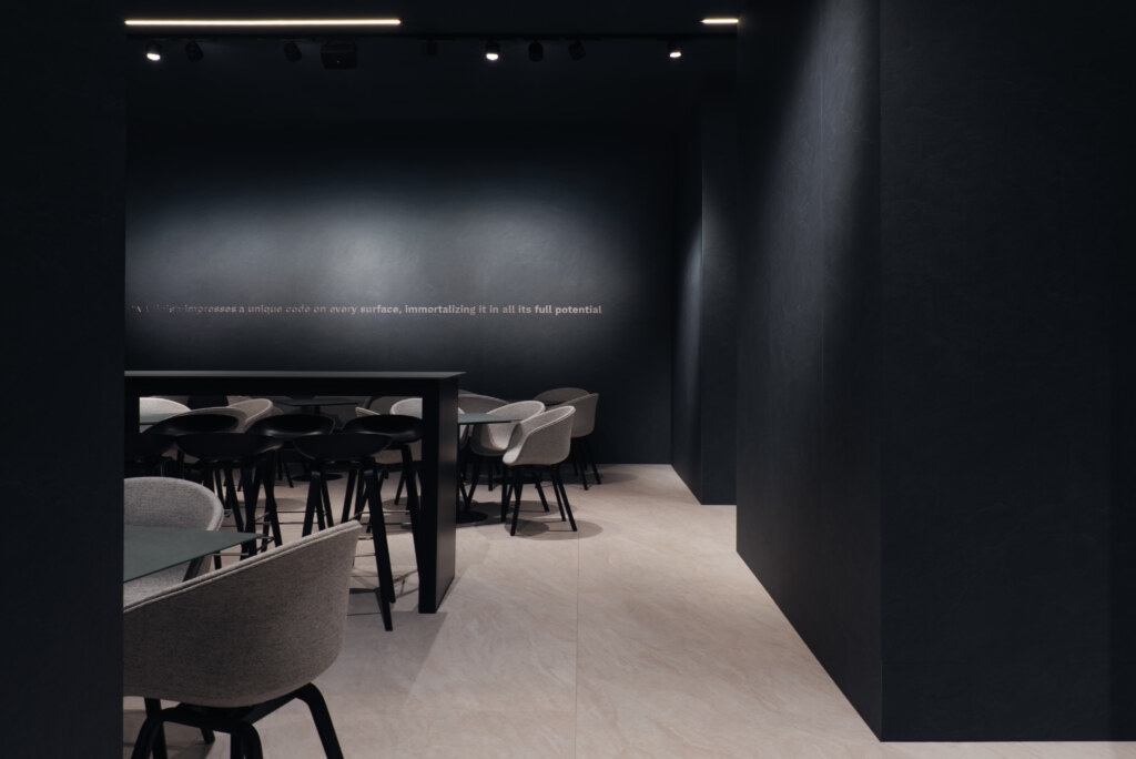 Les nouvelles créations sont exposées dans l’atmosphère évocatrice du stand conçu par la célèbre agence milanaise Stefano Belingardi Architects, qui fêtera en 2026 ses dix ans d’activité. Défini par un style fortement reconnaissable caractérisé par des volumes, des formes géométriques et une alternance de vides et de pleins, le design de l’espace d’exposition vient sceller une collaboration : celle entre l’architecte Stefano Belingardi et Laminam, qui concrétise de multiples projets et se consolide au nom d’une adéquation de valeurs et de style.