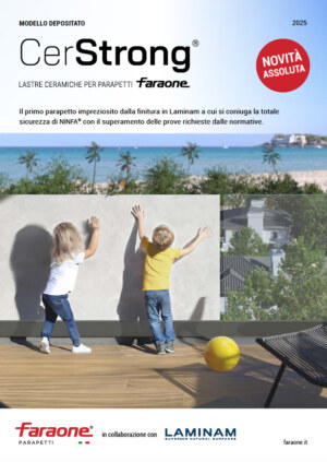 La linea innovativa di parapetti NINFA® con CerStrong® integra la tecnologia avanzata delle superfici Laminam e i sistemi di parapetti in vetro Faraone, per parapetti in ceramica resistenti, personalizzabili e certificati. La fusione tra ceramica e vetro di sicurezza crea una tecnologia all’avanguardia, che ridefinisce il concetto di protezione, estetica e funzionalità.