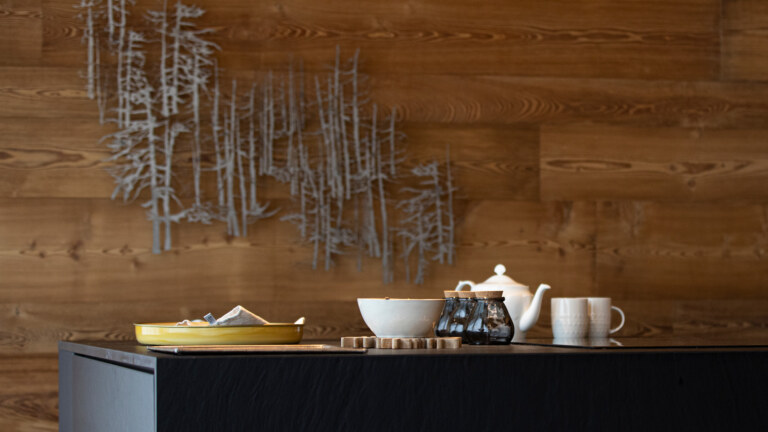 La passione per forme e materiali locali reinterpretati alla luce di un’esigenza di comfort contemporanea è propria anche di Villa Courmayeur, residenza privata realizzata su progetto di Interni Lab sotto la guida degli architetti Sabrina Tonino ed Edoardo Rocci. Nella progettazione degli interni, a spiccare è proprio la diffusa presenza del legno naturale impiegato sia nella boiserie che riveste le pareti, sia per gli arredi che declinano il gusto tradizionale in forme ora squadrate e minimali, ora basilari e archetipiche.