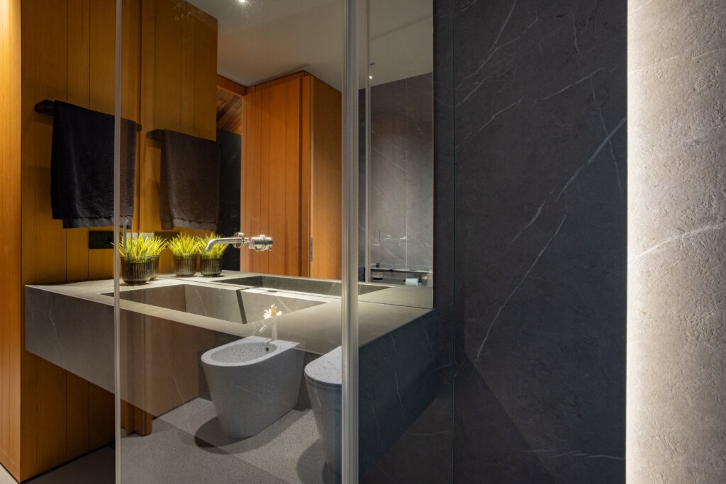 Nel contesto de “La casa che guarda il mare” l’applicazione multidimensionale della ceramica Laminam, ovvero il Laminam Effect, dal rivestimento verticale al pavimento, fino agli elementi d’arredo come ante, top cucina e lavabo integrato, testimonia l’eccezionale versatilità delle superfici Laminam, in un connubio indissolubile tra estetica ricercata e performance tecniche superiori. La resistenza all’usura, ai graffi, alle alte temperature e agli sbalzi termici rende queste superfici ideali per ambienti esigenti come bagni, piscine e cucine, garantendo durabilità e inalterabilità nel tempo. La natura non porosa delle lastre ceramiche Laminam assicura inoltre una manutenzione semplificata e un’igiene impeccabile, aspetti cruciali in qualsiasi contesto residenziale.