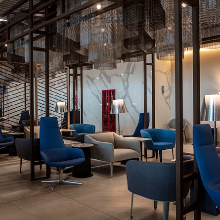 Nella nuova “LATAM Lounge” la valorizzazione del territorio prende forma anche nella mostra permanente di sculture di artisti sudamericani emergenti, realizzate con materiali riciclati in un’ottica di upcycling. “Abbiamo l’abitudine di inserire l’arte nei nostri progetti” spiega Bruno Frugone. “Nelle lounge ce ne sono più di una sessantina, un fatto che ci rende molto orgogliosi.”