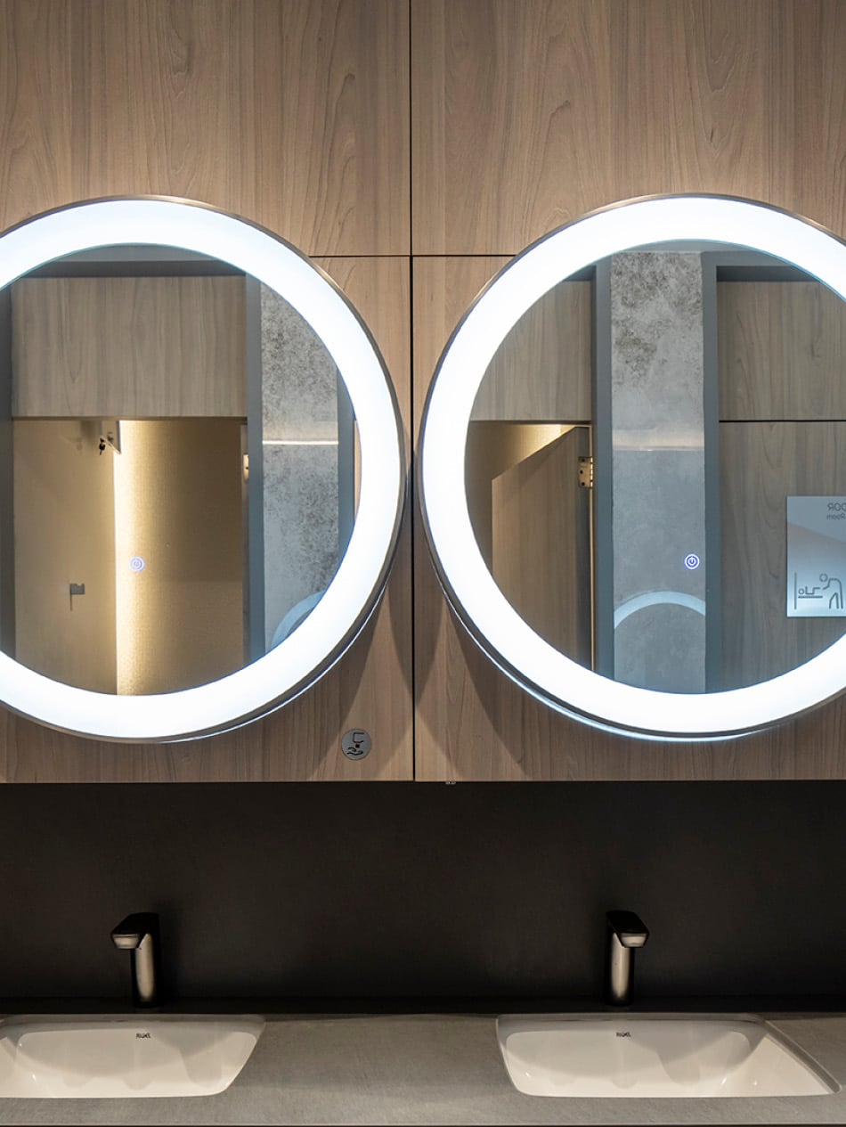 Per noi è stato importante che tutti gli spazi fossero Covid-free” spiega Jorge Hasbun, founder partner e principal architect di Grupo Arquitectos. “Nei bagni, ad esempio, tutto è touchless e le superfici ampie trasmettono una maggiore impressione di pulizia.”