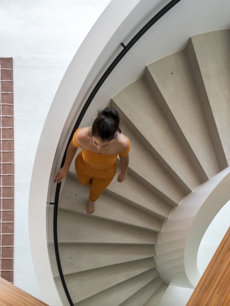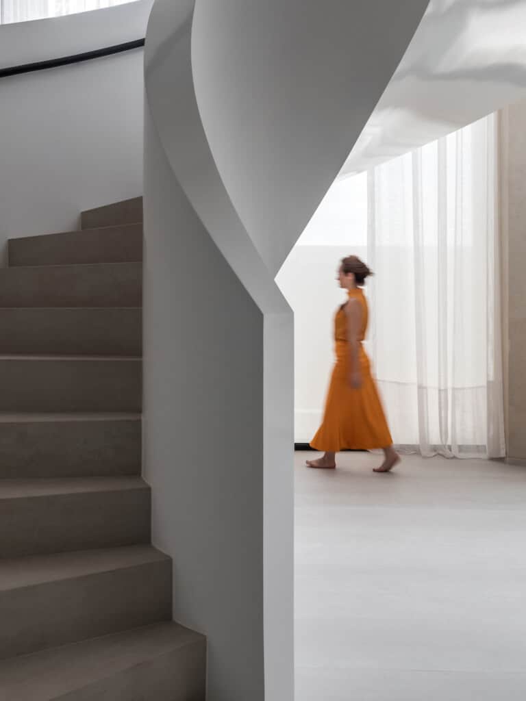 Mocno brazylijski duch projektu jest efektem drobiazgowej analizy materiałów; naturalne elementy, tekstury i kolory wybrano tak, by podkreślać najważniejsze cechy budynku, jakimi są: harmonia z otaczającą go przyrodą, strategiczne wykorzystanie panoramy oraz innowacje technologiczne z myślą o zrównoważonym rozwoju. Wyróżniają się zwłaszcza płyty wielkoformatowe marki Laminam: na podłogach i schodach zastosowano tutaj kolekcję I Naturali w kolorze Pietra di Savoia Avorio w wersji groszkowanej.