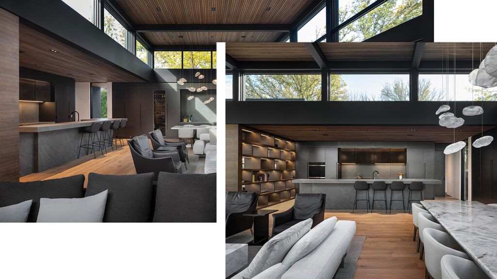 Кухня, выбранная для участия в конкурсе дизайна кухни Sub Zero и Wolf в Западной Канаде, изготовлена из Laminam Pietra Grey Naturale большого размера (1620 x 3240 мм) с толщиной 12 мм для верхней части, задней панели, столешницы и полок шкафа.