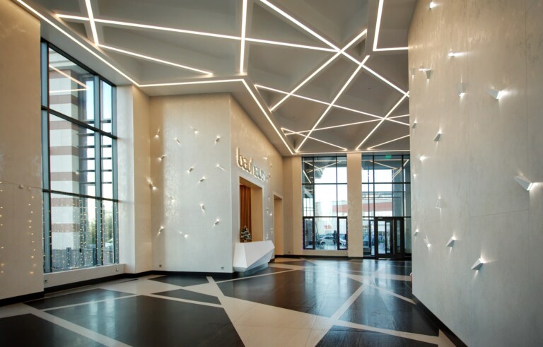 Флагманский проект компании Bau City — ЖК BauHaus, первый дом в Московском районе Санкт-Петербурга, спроектированный в традициях легендарной архитектурной школы Баухаус. Дом, где качество материалов стало, по словам авторов, определяющей ценностью. Керамические поверхности Laminam — Oxide Bianca и Oxide Perla участвуют в отделке стен и пола входной группы комплекса.