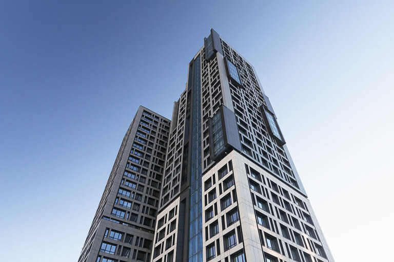 Лаконичная и одновременно динамичная архитектура, строгая геометрия и стремящиеся вверх линии. ЖК Onyx Deluxe воплощает собой ритм мегаполиса, а бинарная цветовая конфигурация фасадов подчеркивает выразительность форм и их объемы. Поверхности Blend Grigio, Blend Nero и I Naturali Marmi Diamond Cream Bocciardato воссоздают свойственную природной среде гармонию оттенков.