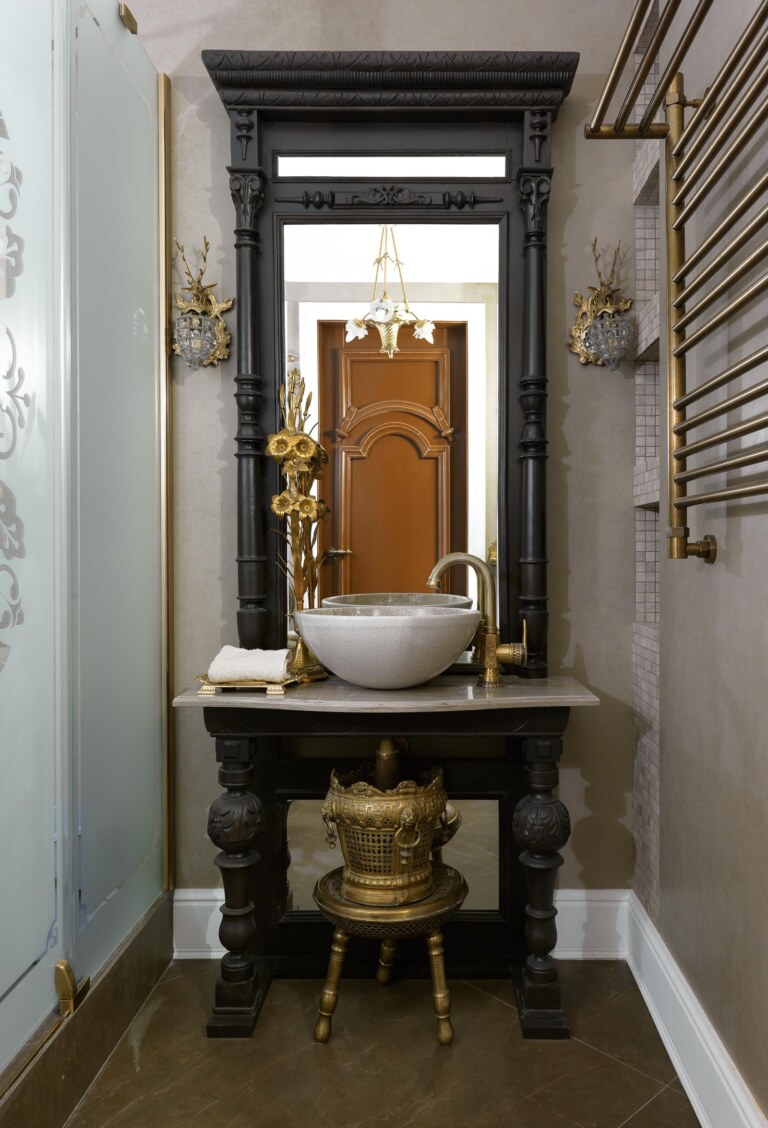 Владелица этой квартиры в Ростове-на-Дону коллекционирует антиквариат и предметы искусства. К началу работы над интерьером собралась солидная коллекция. Всё это богатство надо было красиво разместить, причём так, чтобы пространство оставалось по современному функциональным, комфортным и не выглядело музейным — это должен был быть интерьер для жизни.