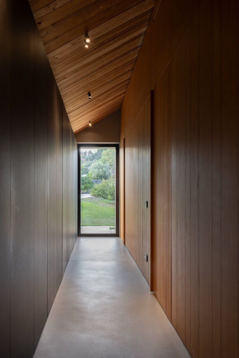 Неразрывная связь наружных и внутренних пространств создается в этом проекте посредством выбора объемов и материалов. Минималистские интерьеры продуманы для повышения практичности повседневной жизни, не отказываясь от чистоты линий. Внешний вид проекта напоминает маленькие одноэтажные сельские дома, переосмысленные как современная частная вилла. Дом состоит из двух отдельных блоков из неотделанного железобетона, напоминающего традиционную каменную кладку. Крыши — двускатные, гармонирующие с окружающими постройками. Блоки соединены друг с другом прозрачным элементом.