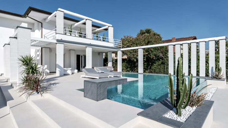 Продукция Laminam славится своей прочностью и всегда узнаваема: эти покрытия часто становится своего рода «кожей» для самых разных архитектурных и дизайнерских проектов. Покрытия Laminam — не просто элемент дизайна, а уникальный материал, который украшает собой любое пространство, одновременно обеспечивая высокую функциональность. Именно этой идеей руководствовался Мишель Виталони, дизайнер интерьеров в архитектурно-дизайнерском бюро Charmitaliastudio, когда придумывал и разрабатывал внутреннее убранство и внешний облик виллы Due в Форте-деи-Марми. Эти четкие чистые линии в сочетании с абсолютно практичным дизайном формируют «рациональный» и привлекательный стиль, который отличает все работы студии. Выбор материалов для отделки лишь подчеркивает эту безупречную эстетику.