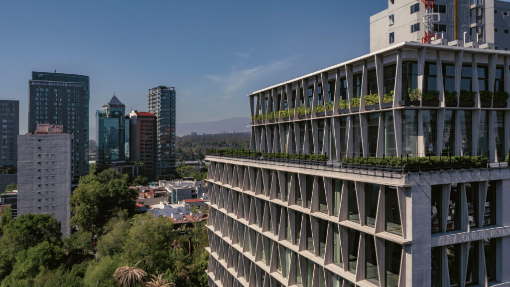 Здание Castelar 75 занимает территорию площадью 1207 кв. м. и насчитывает 17 этажей — 15 снаружи и еще 2 под землей, — общая площадь которых составляет 18 314 кв. м. Масштабность этого проекта впечатляет — как с точки зрения его размеров, так и с точки зрения подхода к охране окружающей среды, что подтверждается сертификатом LEED GOLD, который выдается по итогам оценки экологической устойчивости здания на протяжении всего его жизненного цикла — от разработки дизайна до строительства и эксплуатации. При этом баллы присуждаются даже строительным материалам, используемым для реализации таких амбициозных целей.