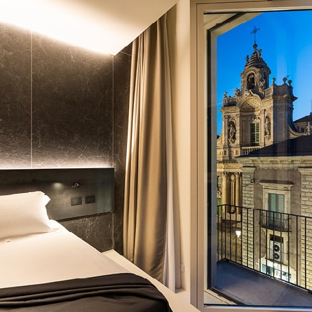 В самом сердце старого города, напротив одной из прекраснейших церквей Катании в стиле барокко, находится Meo Design Suite and Spa — небольшой курортный отель на семь номеров со спа-центром. «Meo» на катанском диалекте означает «мой», и именно эту идею постарались воплотить в жизнь Симона Косентино и Антонио Ирачи из дизайнерской студии Iraci Architetti. Уютное пространство, где гости чувствуют себя как дома, и номера, которые, отличаясь по дизайну, тем не менее объединены общим стилем, отражающим дух проекта.