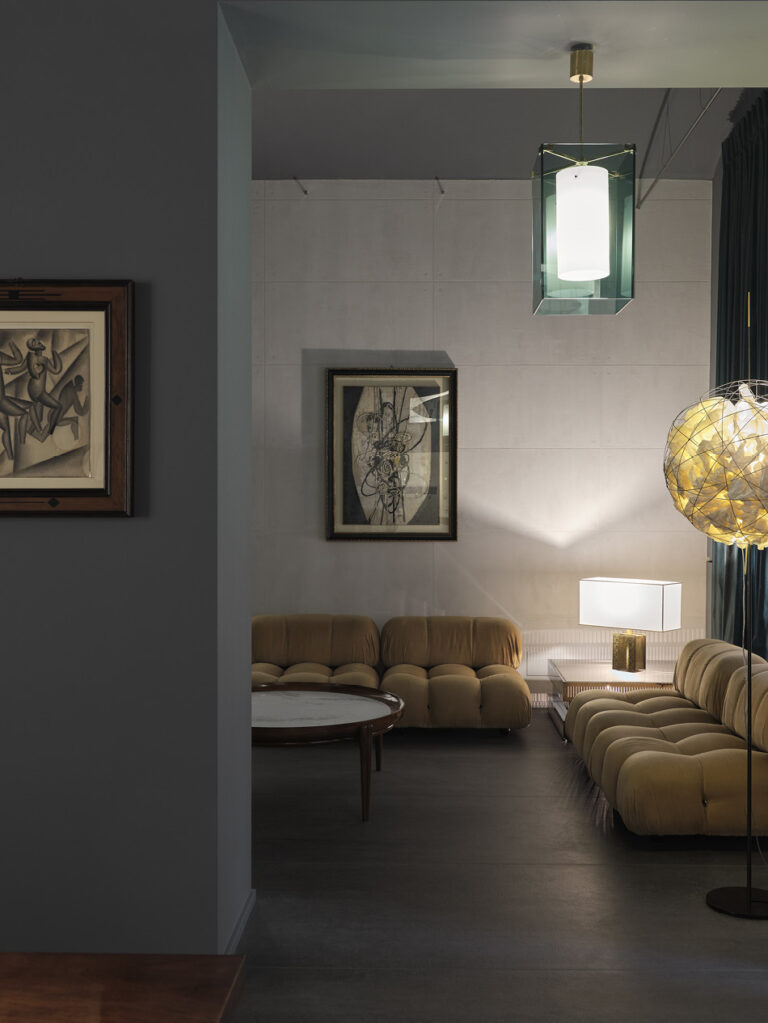 На протяжении последних 10 лет галерея Rossella Colombari постоянно использует поверхности Laminam для оформления части своих пространств. Так, широкоформатные плиты Pietra di Savoia Antracite Bocciardato из коллекции I Naturali (размер 1000 × 3000 мм, толщина Laminam 5) в качестве напольного покрытия демонстрируют впечатляющие технические характеристики, выдерживая безо всякого ущерба для своего первоначального безупречного облика не только регулярные перестановки мебели разных размеров и веса, но и потоки посетителей, которые исчисляются тысячами.
