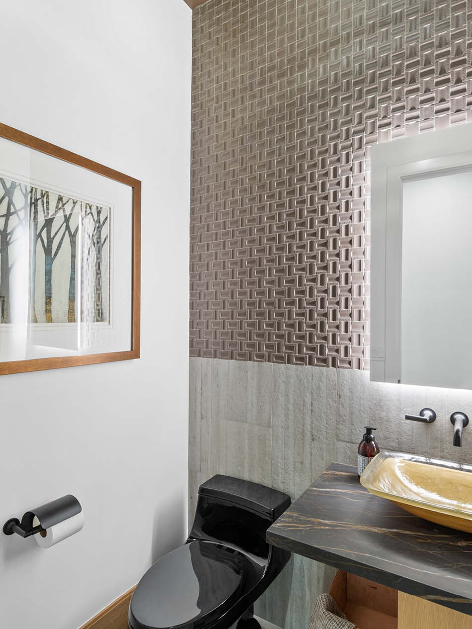 The I Naturali collection lends a unique value to the rooms it covers, and it proposes the refined elegance of marble with the Noir Desir finish: the dark color is interrupted only by the soft movement of the ivory veins, graphic elements that enhance the nobleness of the material. The I Naturali collection also stands out for its functional performance and versatility; it is an optimal choice for walls and floors as well as for furnishing surfaces. In Twin Hollow Villa, large Noir Desir slabs decorate the kitchen in both the worktop and the cladding of the central island, where special care is paid to safety, hygiene and durability of the materials used.