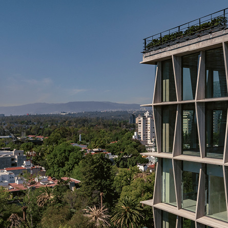 Exclusividad residencial con una filosofía ecosostenible: el galardonado Studio Donis lleva la arquitectura más vanguardista a Ciudad de México y elige I Naturali de Laminam para su icónica fachada alveolar.